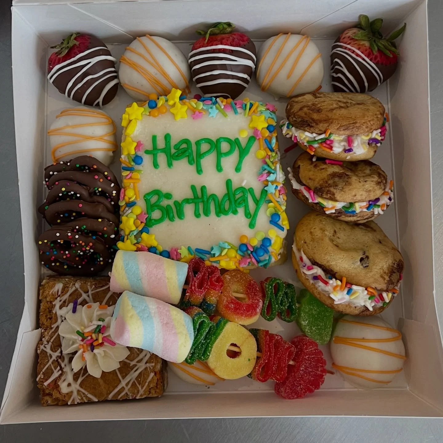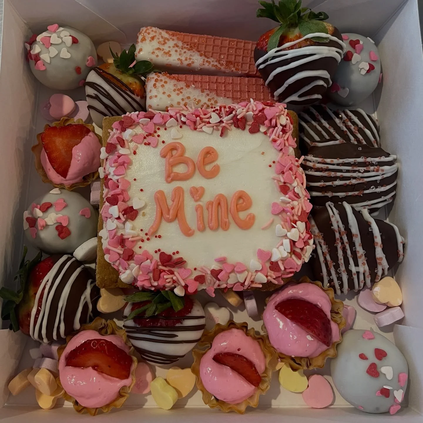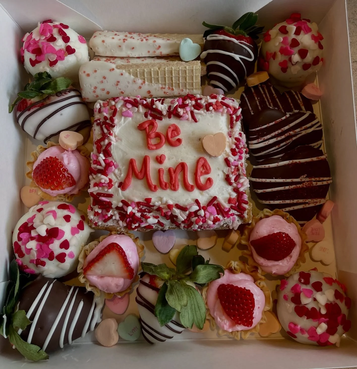 Sugar cookie cake, chocolate covered strawberries, oreo truffles, chocolate covered peanut butter hearts, strawberry cheesecake bites, chocolate covered vanilla wafers, conversation hearts.